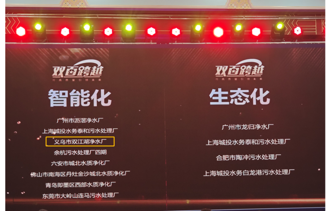 義烏市雙江湖凈水廠在2023年11月起與聯盟內外的31家優秀的水務企業,以領跑者標準為依據開展了自評價。在120座申報的污水處理廠中入圍標桿廠評審。在2024年1月上海站區域專題評審會中以污水處理服務1+6“領跑者”系列標準為基礎,結合專家現場打分的方式,最終被評選出第三期“雙百跨越”智能化標桿污水處理廠。