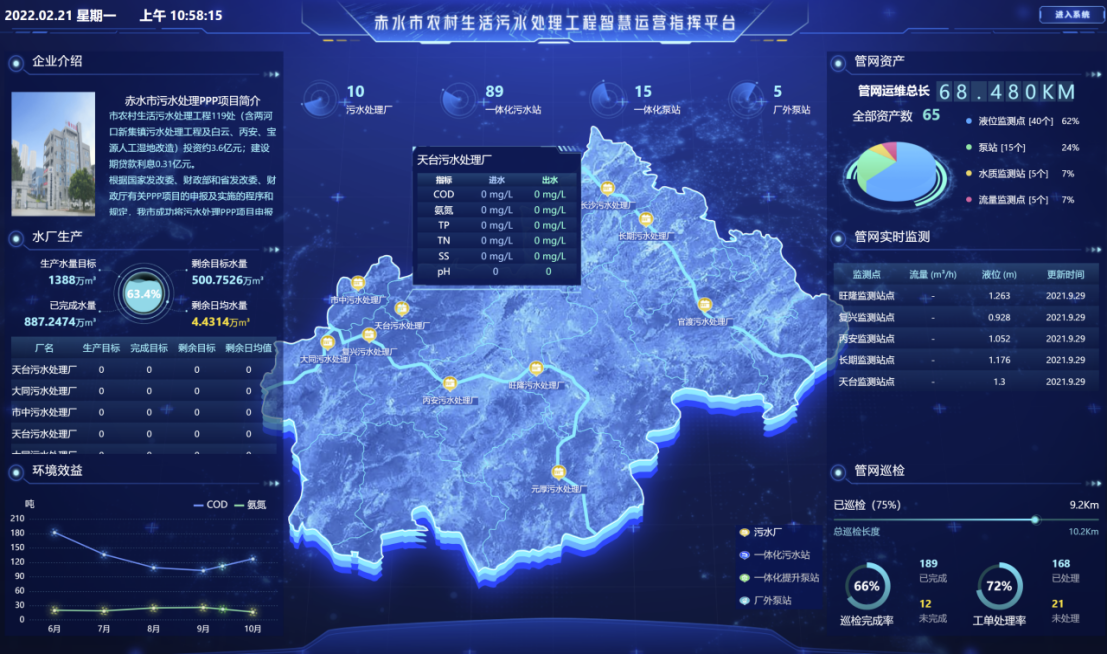 《赤水市農(nóng)村生活污水處理工程智慧運營指揮平臺項目》是赤水市水務(wù)局與赤水市碧水清源環(huán)境科技有限公司打造的重點項目之一。該項目以政策為導(dǎo)向,以企業(yè)數(shù)字化轉(zhuǎn)型發(fā)展為契機,通過政府監(jiān)管+企業(yè)建設(shè)的模式,充分發(fā)揮了政府部門的行業(yè)監(jiān)管作用,激發(fā)了企業(yè)發(fā)展的活力,共同促進了城市水務(wù)工作的高效開展,提高了水務(wù)工作效率,有力推動了城市生態(tài)文明建設(shè)。